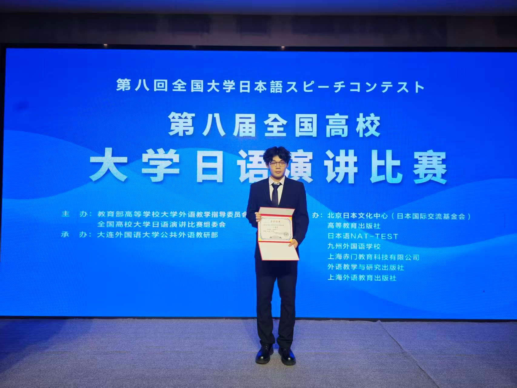 2025年10月18日,第八届全国高校大学日语演讲比赛在大连外国语大学圆满结束。经过激烈角逐,我校纺织23级汪林峰同学荣获全国二等奖;张瑜、王学鹏两位指导老师获得“优秀指导教师”称号,充分展现了我校的外语教学水平。