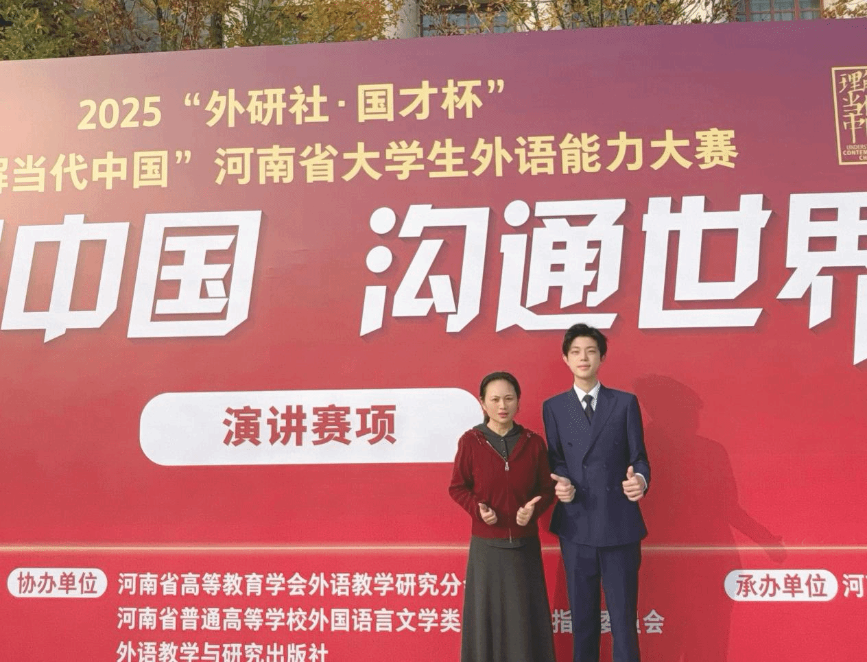 近日,备受瞩目的河南省教育厅主办的2025“外研社·国才杯”“理解当代中国”全国大学生外语能力大赛河南赛区演讲赛项在河南大学圆满落幕。我校选拔出的2位学子在激烈的角逐中从全省各高校的精英中脱颖而出,斩获河南赛区特等奖1项,晋级全国总决赛;荣获一等奖1项。