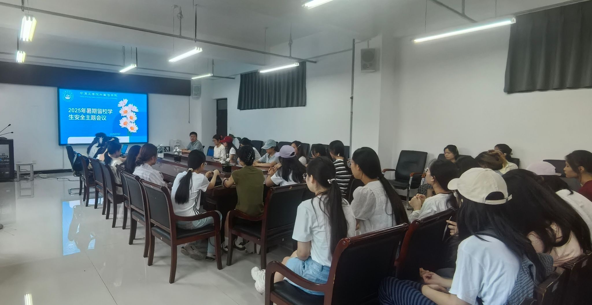 7月7日,我院在3组团A402会议室召开2025年暑期留校学生安全专题会。学院党委书记卢世海,2022级辅导员刘爽,班主任郝菁以及全体留校学生参加会议。
